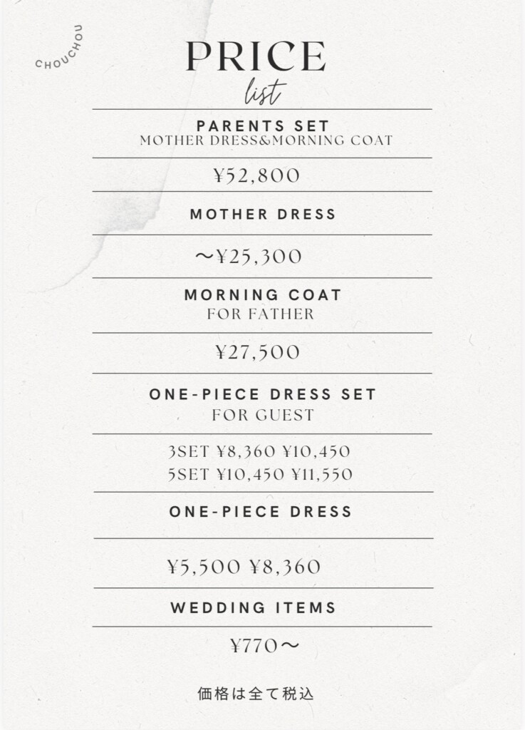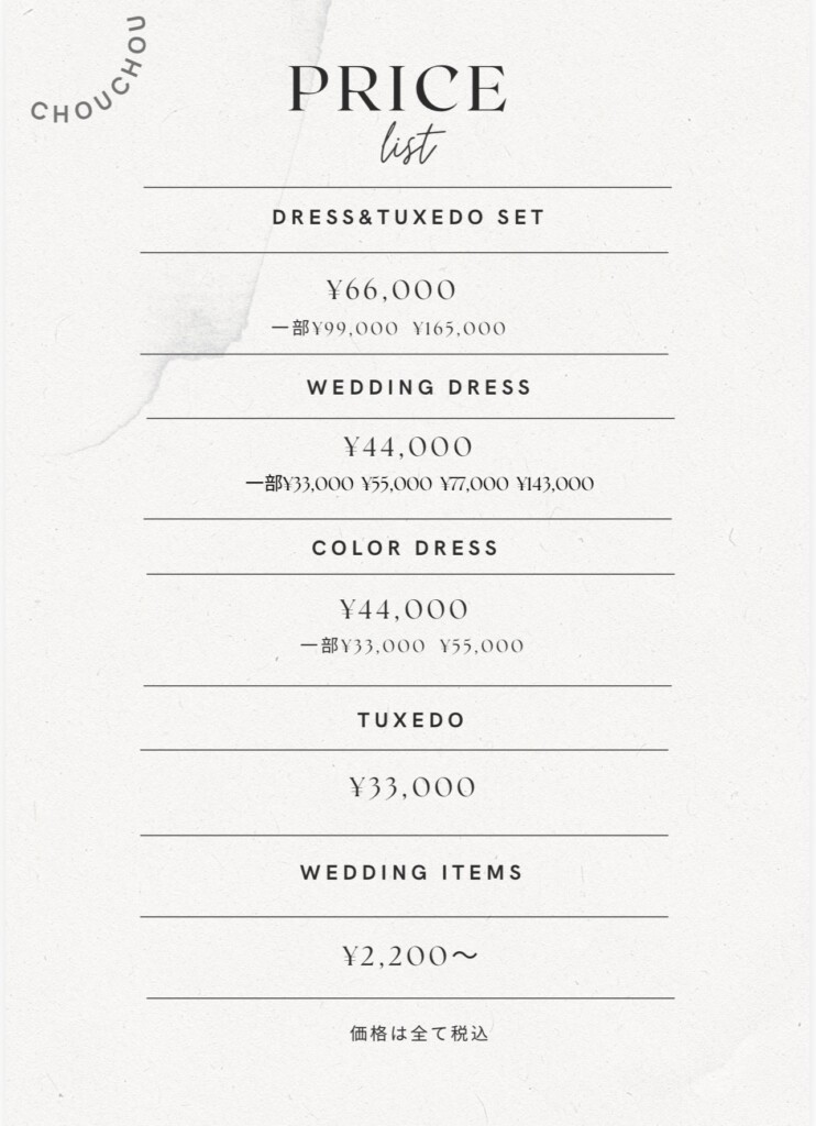 ※税込¥143,000ドレスとタキシードセットの場合はさらに