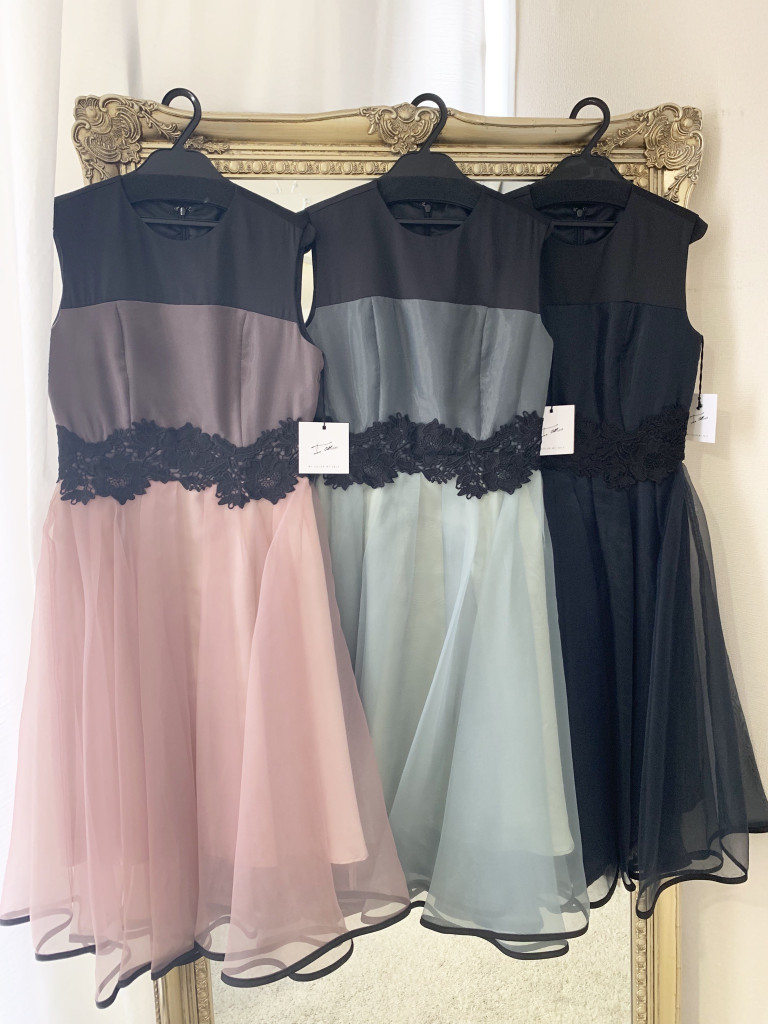ブラックのレースがポイントのこちらのドレスもどのカラーもとても人気です♡